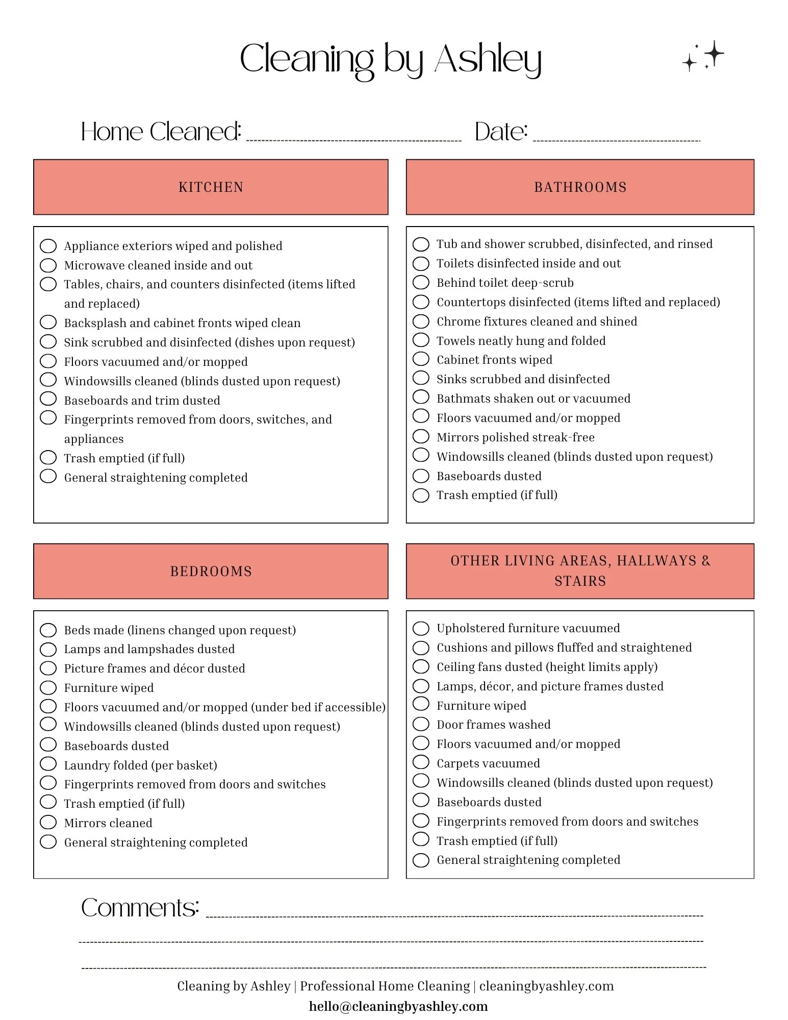 Every home I clean is cared for with the same attention to detail I’d want in my own. My 50-Point Checklist is designed to make sure nothing gets missed — from kitchen corners to baseboards and every space in between.